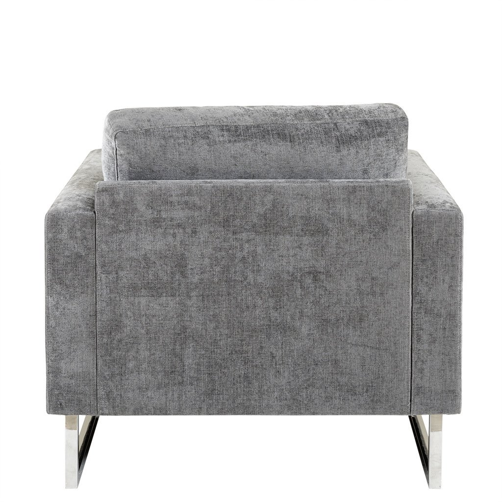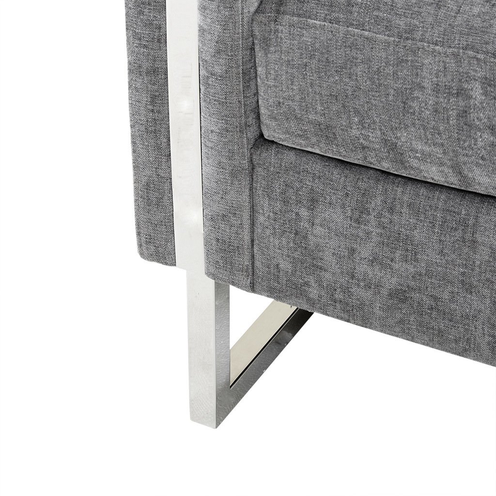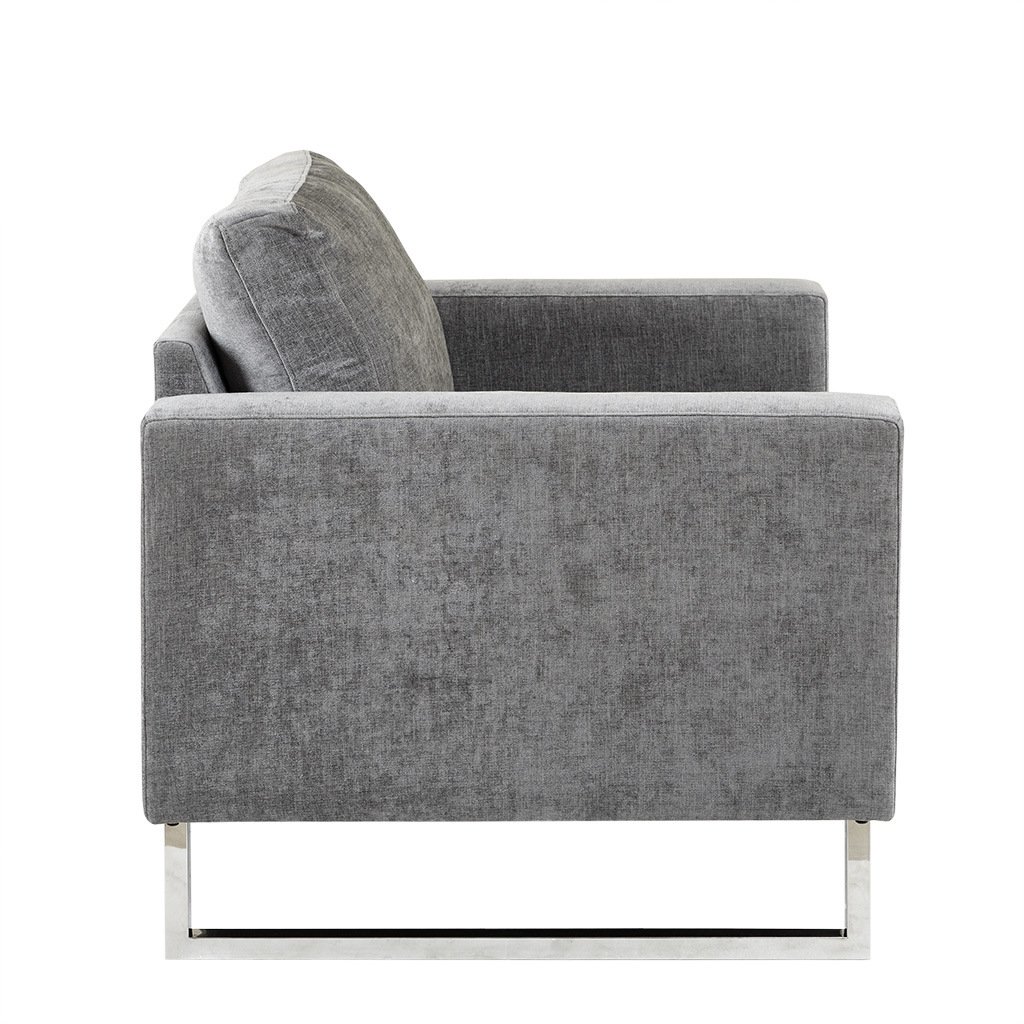 Give your space a lavish update with the INK+IVY Madden Accent Chair. Featuring high track arms and thick removable cushions, this accent chair is upholstered in a soft grey fabric that creates a luxurious seating experience. The chrome plated frame and legs provide exceptional support, while also adding a touch of elegance. Strikingly beautiful, this accent chair is sure to make a statement in any room of your home. Leg assembly required.