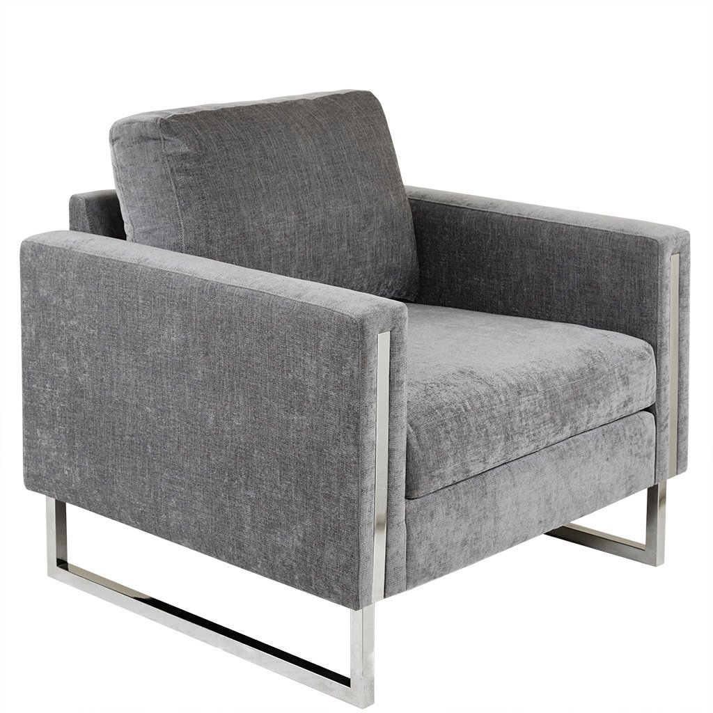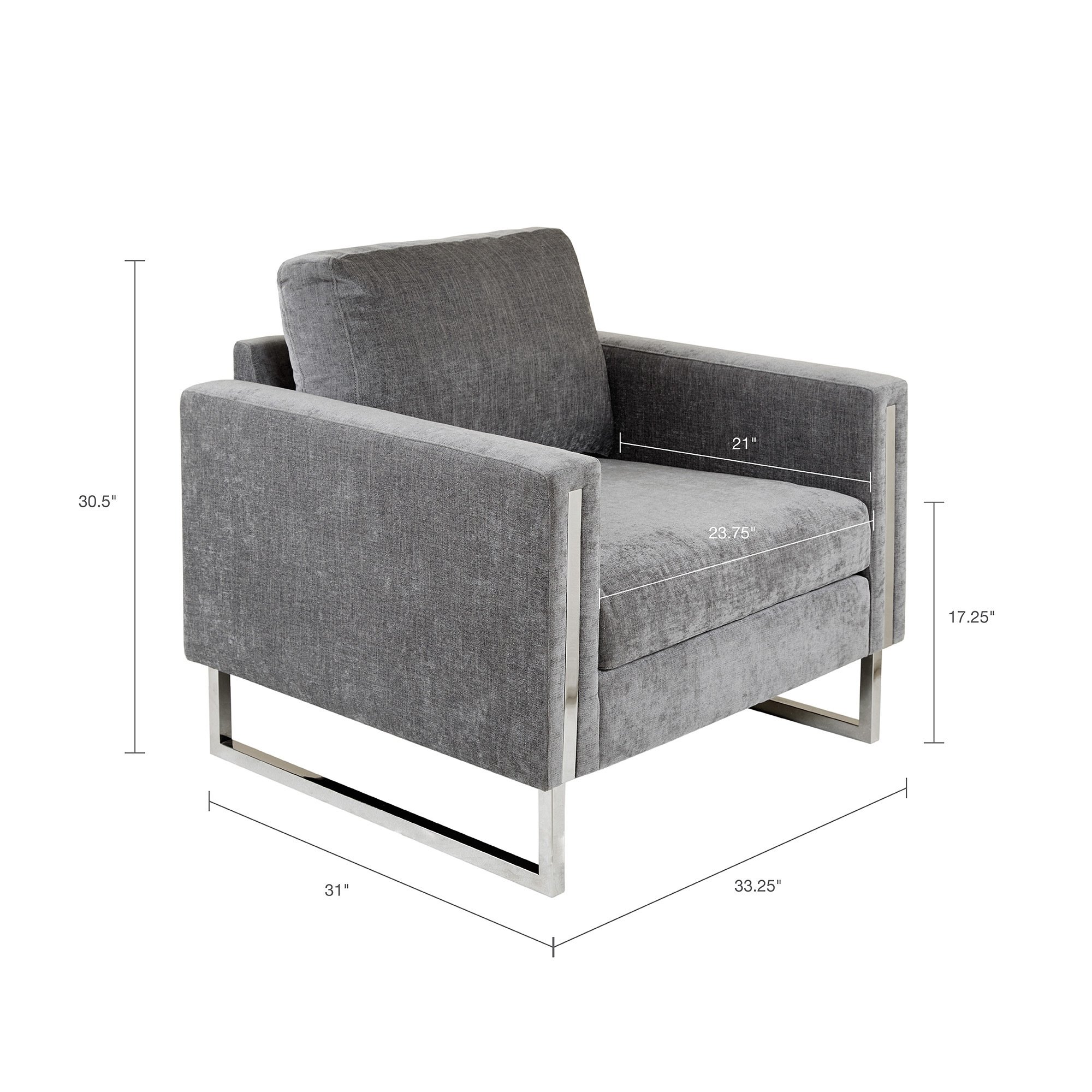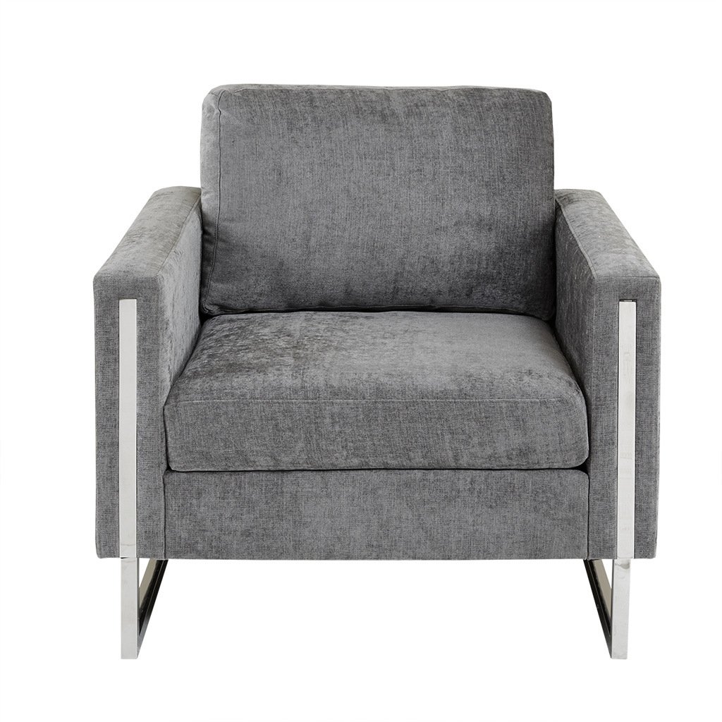 Give your space a lavish update with the INK+IVY Madden Accent Chair. Featuring high track arms and thick removable cushions, this accent chair is upholstered in a soft grey fabric that creates a luxurious seating experience. The chrome plated frame and legs provide exceptional support, while also adding a touch of elegance. Strikingly beautiful, this accent chair is sure to make a statement in any room of your home. Leg assembly required.