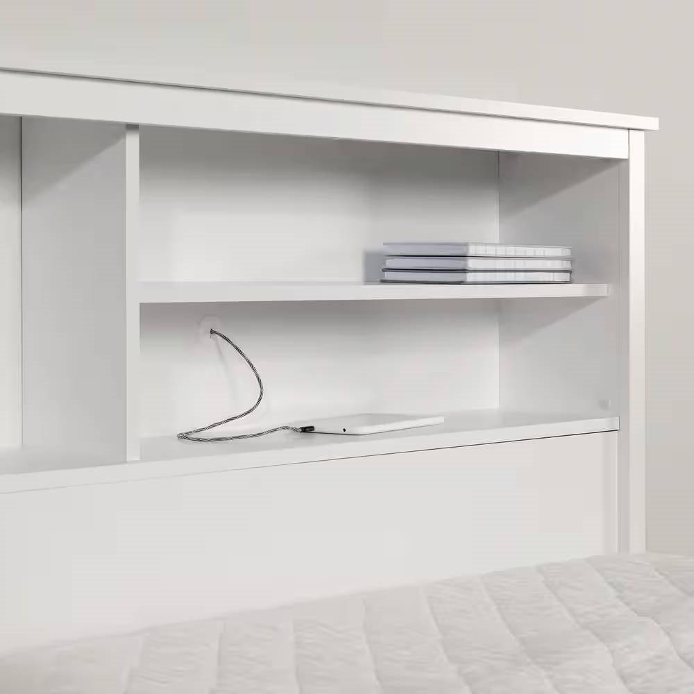 • Twin size Modern Scandinavian Style Bookcase Headboard in White Wood Finish