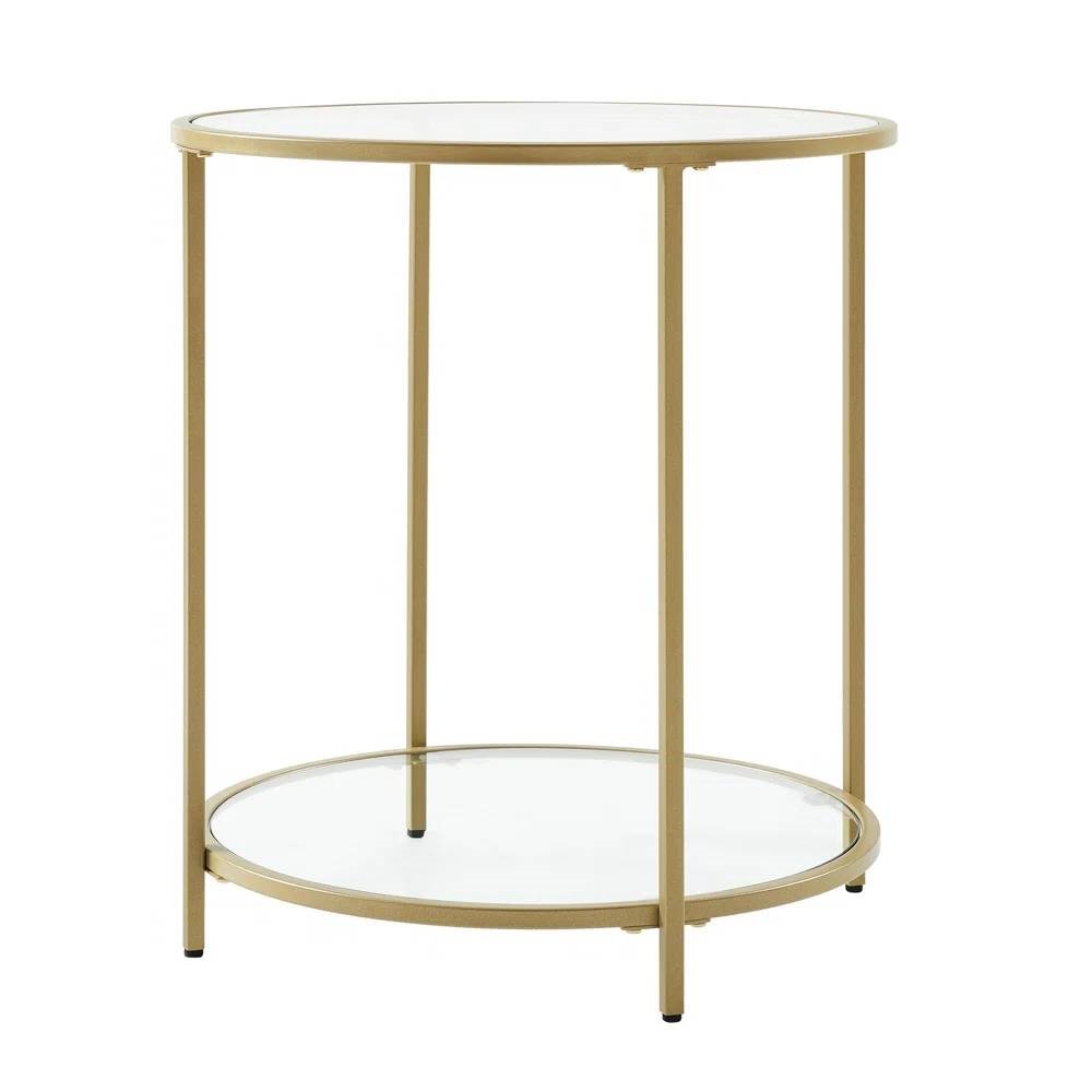 Home > Modern Glass Top Round Metal End Table Nightstand with Bottom Shelf in Gold