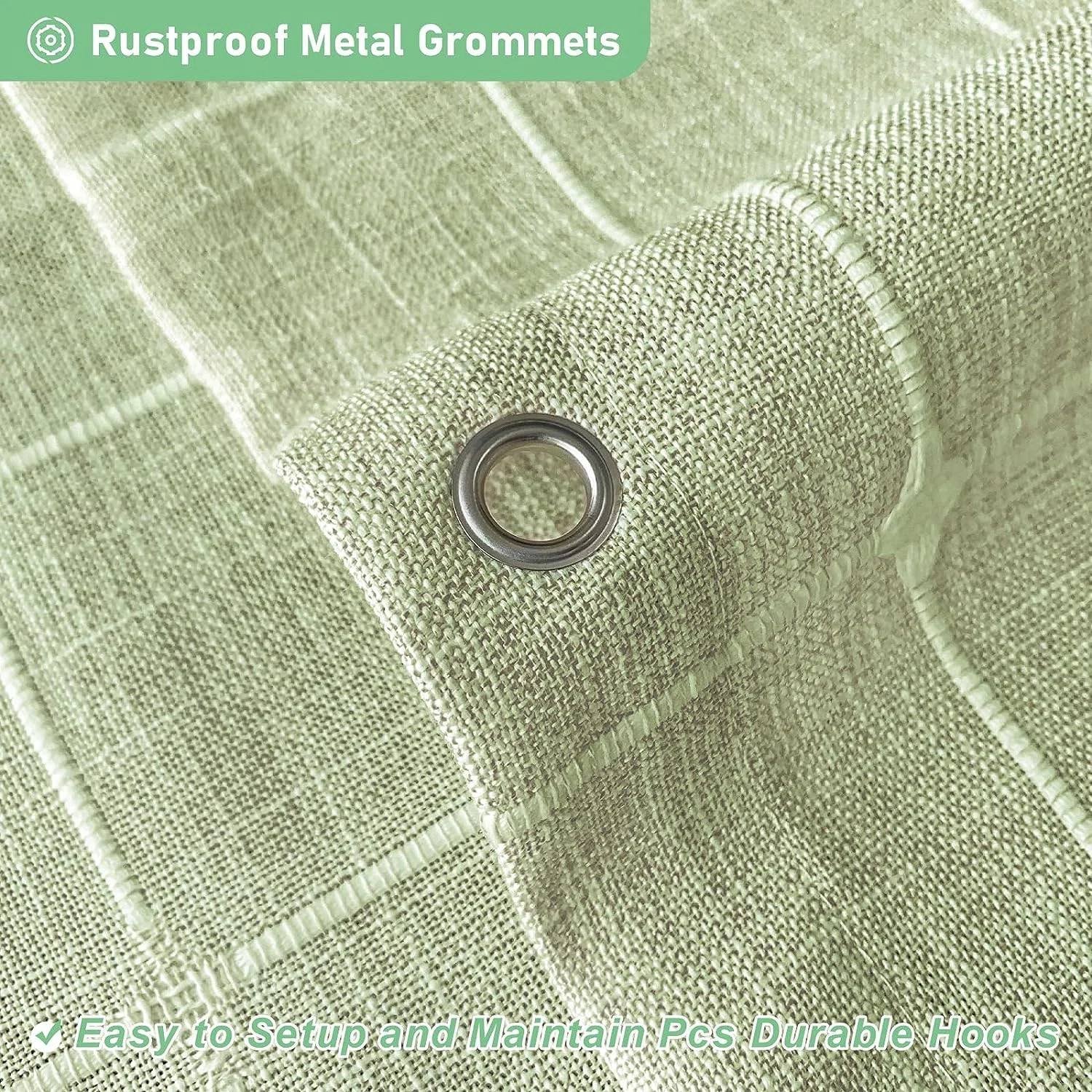 Wrinkle Free & Ultra Thick Fabric - 310 GSM polyester check creates farmhouse like effect for this 72-inch Farmhouse Green Cotton Linen Blend Shower Curtain with Boho Tassels, so that it could keep in place. The quality curtain is elegant and soft, which can deliver a rustic or country-like bathroom environment. Boho Farmhouse Design - The 72-inch Farmhouse Green Cotton Linen Blend Shower Curtain with Boho Tassels is elegant looking and adds a special country style to the bathroom. Simple geometric pattern and boho tassel elements are also very eye pleasing, which is suitable for the master bathroom and guest bathroom. Rust-Resistant Metal Grommet Holes - The 72 inches farmhouse shower curtain has 12 stainless metal button holes and 12 free plastic hooks to guarantee no rust. Easy to Clean - The farmhouse fabric shower curtain is machine washable in cold water, dries quickly. Extra strong fabric and tight hem could avoid shrinkage and deformation. Warm Tips - The modern boho cloth shower curtain can resist water to some degree. Only a little bit of water will soak through, and most of the water will form water drops on the surface and quickly be repelled. Recommend using together with a waterproof plastic shower curtain liner, If you pursue higher water resistance.