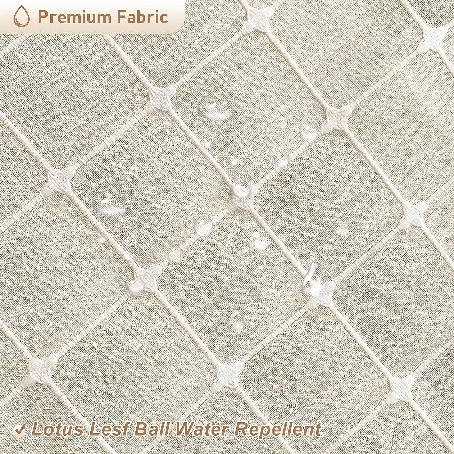 Wrinkle Free & Ultra Thick Fabric - 310 GSM polyester check creates farmhouse like effect for this 72-inch Farmhouse Beige Cotton Linen Blend Shower Curtain with Boho Tassels, so that it could keep in place. The quality curtain is elegant and soft, which can deliver a rustic or country-like bathroom environment. Boho Farmhouse Design - The 72-inch Farmhouse Beige Cotton Linen Blend Shower Curtain with Boho Tassels is elegant looking and adds a special country style to the bathroom. Simple geometric pattern and boho tassel elements are also very eye pleasing, which is suitable for the master bathroom and guest bathroom. Rust-Resistant Metal Grommet Holes - The 72 inches farmhouse shower curtain has 12 stainless metal button holes and 12 free plastic hooks to guarantee no rust. Easy to Clean - The farmhouse fabric shower curtain is machine washable in cold water, dries quickly. Extra strong fabric and tight hem could avoid shrinkage and deformation. Warm Tips - The modern boho cloth shower curtain can resist water to some degree. Only a little bit of water will soak through, and most of the water will form water drops on the surface and quickly be repelled. Recommend using together with a waterproof plastic shower curtain liner, If you pursue higher water resistance.