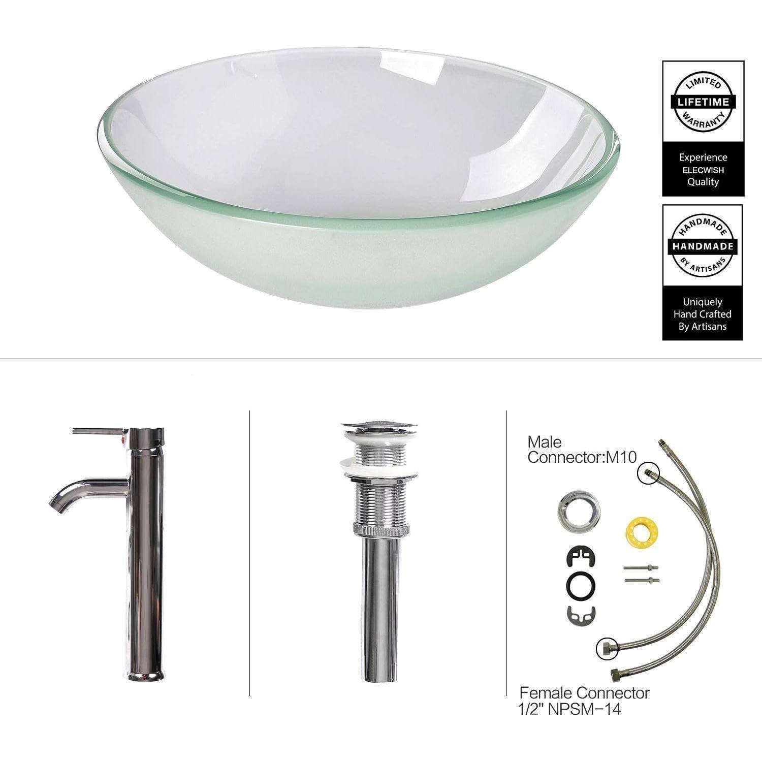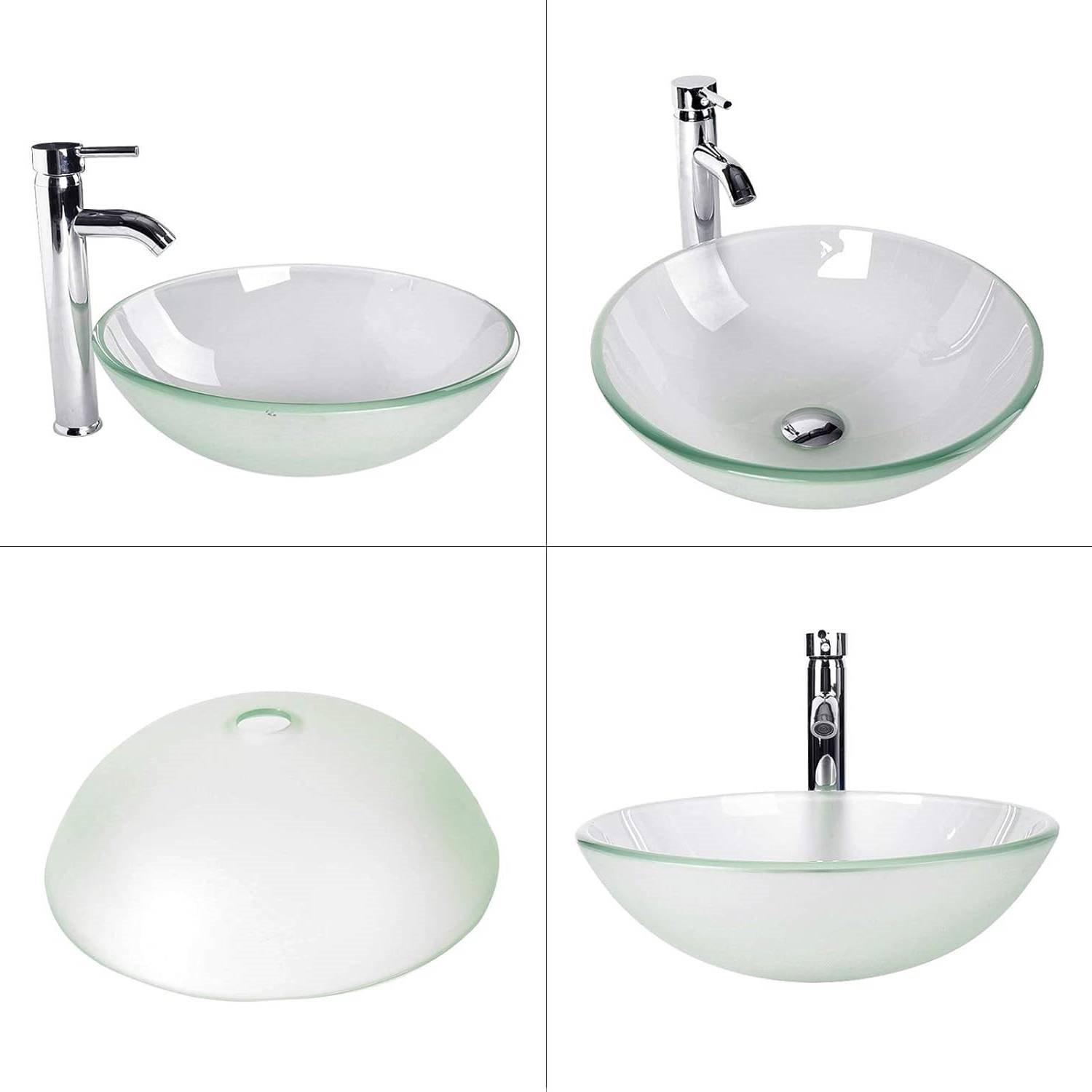 This Modern Farmhouse Bathroom Vanity with Wooden Sliding Door and Frosted Glass Sink is made of Eco-MDF wood for long-lasting durability. Careful Coverage and Eco paint enable durability. Cabinet: 19"x 28"x 31.5"(D×W× H); Sink dimension: 16.5" x 5.5" (W xD); Bowl thickness: 0.5". Scratch-resistant & Polished surface is easy to clean up. Come with Vanity, Glass sink, Chrome Faucet, Pop up drain, Hot/ cold lines, and some mounting hardware. Modern and stylish design fit perfectly with most bathroom decor; Easy installation.