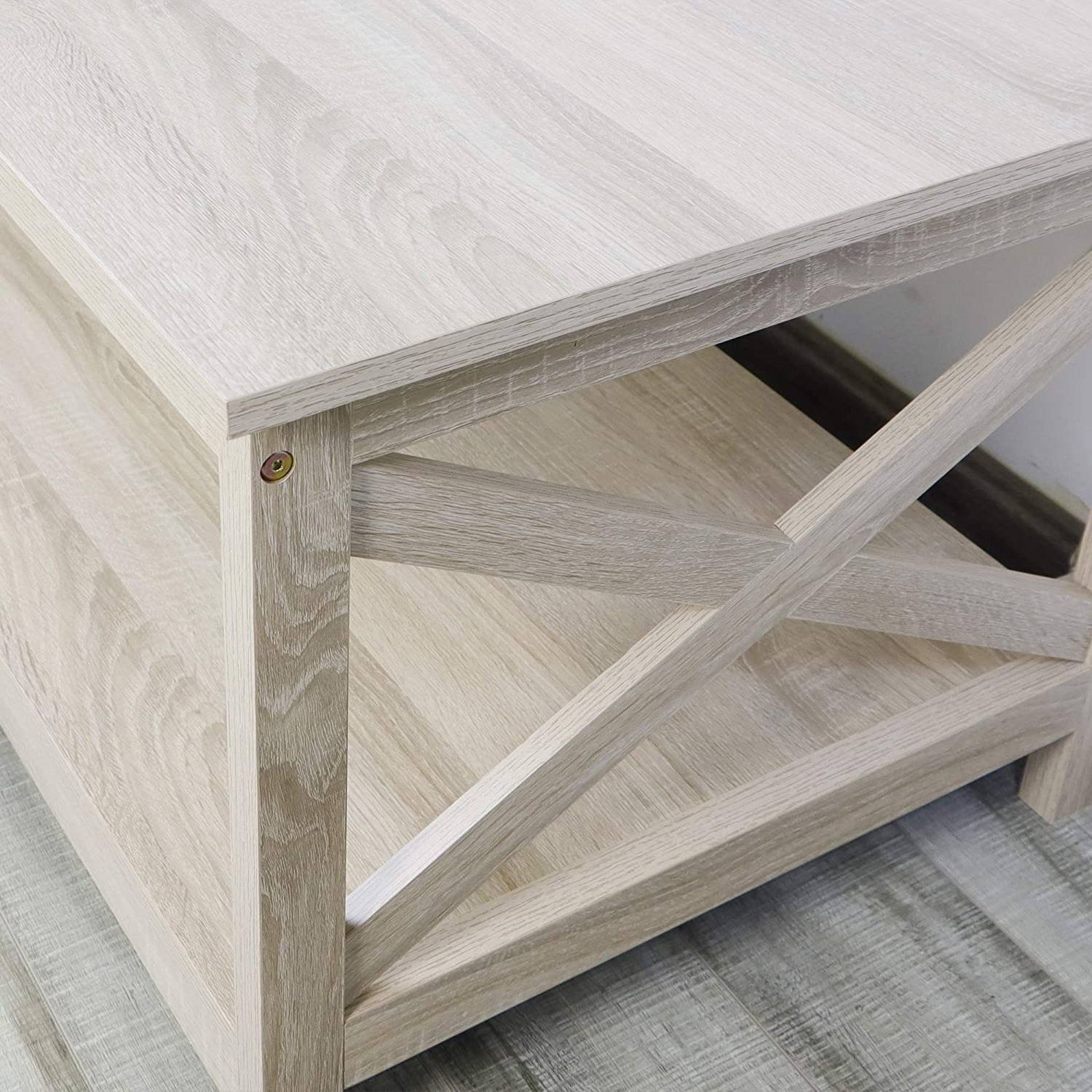 Contemporary Farmhouse Coffee Table in Rustic White Oak Wood Finish