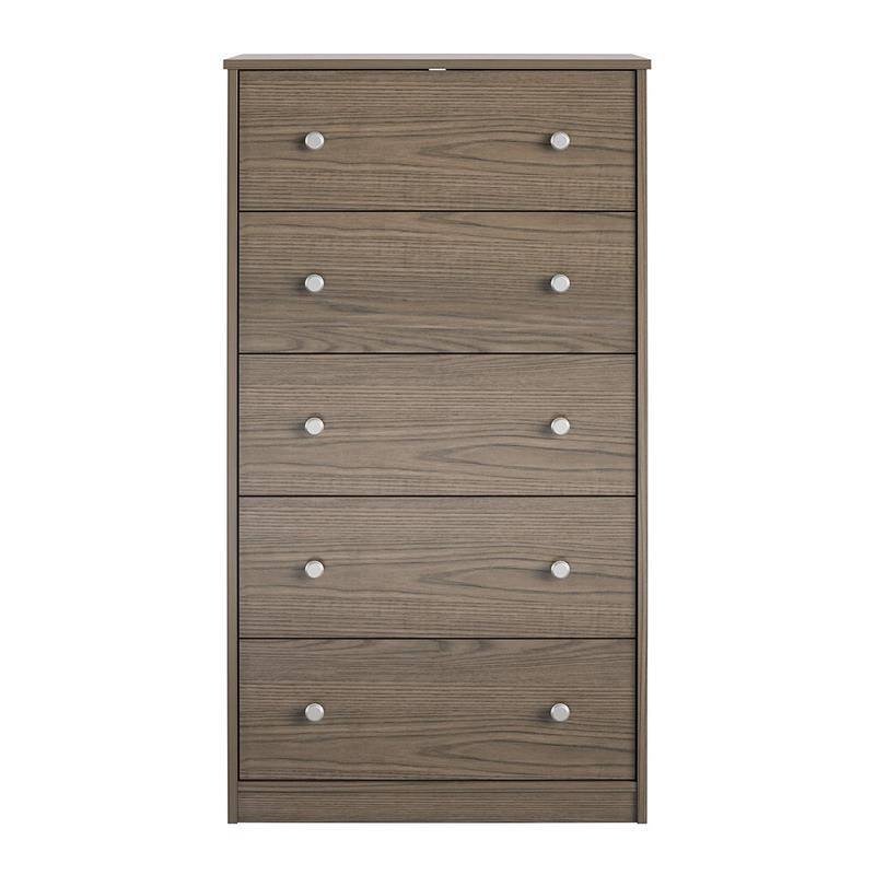 Modern 5-Drawer Bedroom Chest in Rustic Grey Brown Wood Finish
