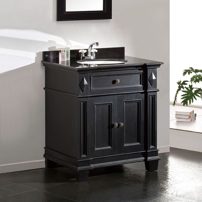 Home > Single Sink Bathroom Vanity with Cabinet & Black Granite Countertop / Backsplash