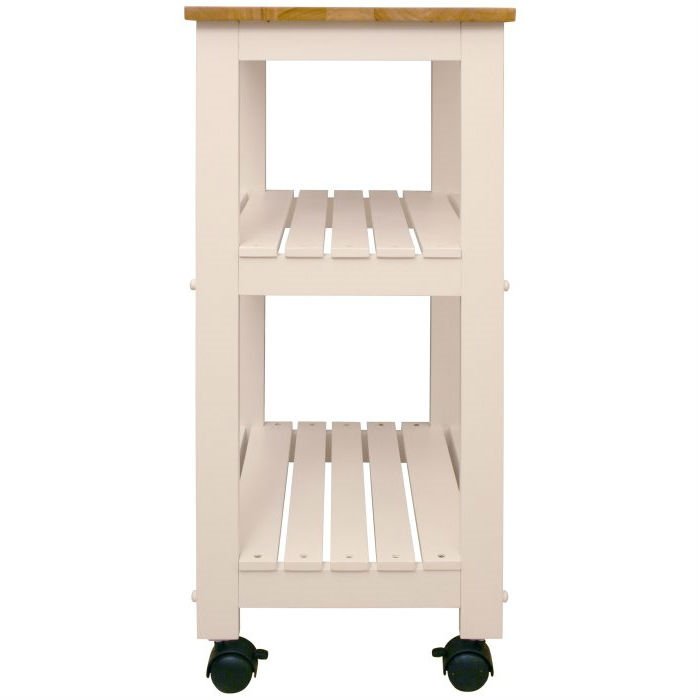 This White Kitchen Microwave Cart with Butcher Block Top & Locking Casters has a classic design and rugged construction that reflect Catskill's commitment to quality.