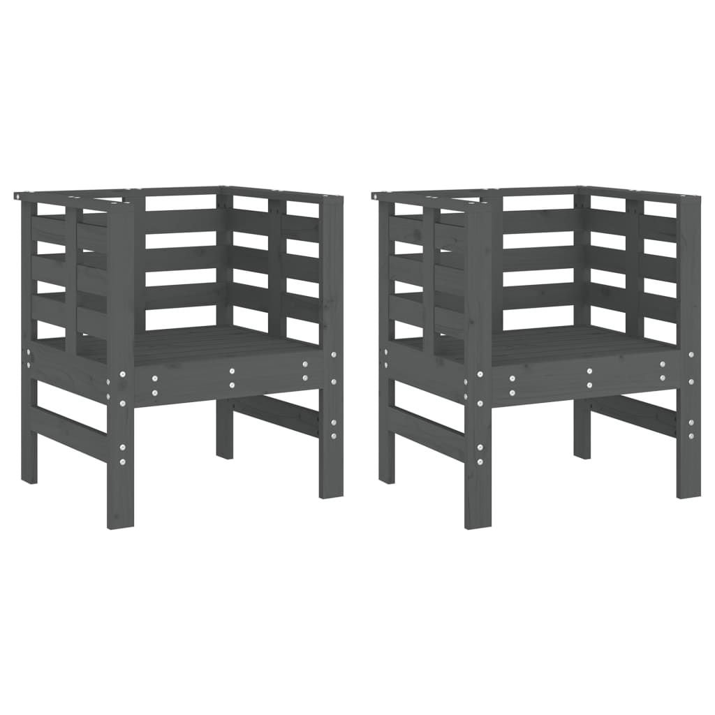 Home > Garden Chair Set of 2 Grey Solid Pine Wood