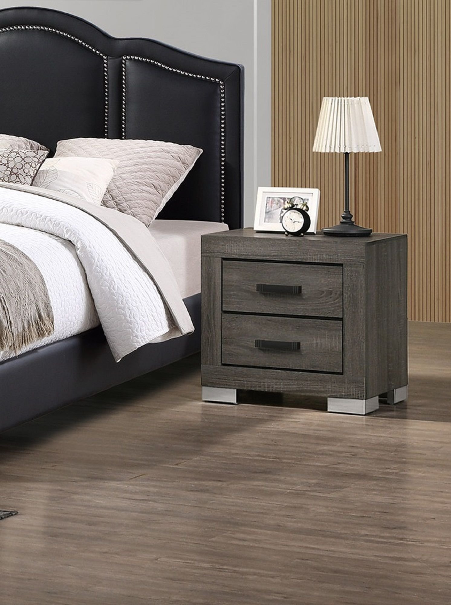 Bedroom Furniture Traditional Look Unique Wooden Nightstand Drawers Bed Side Table Grey