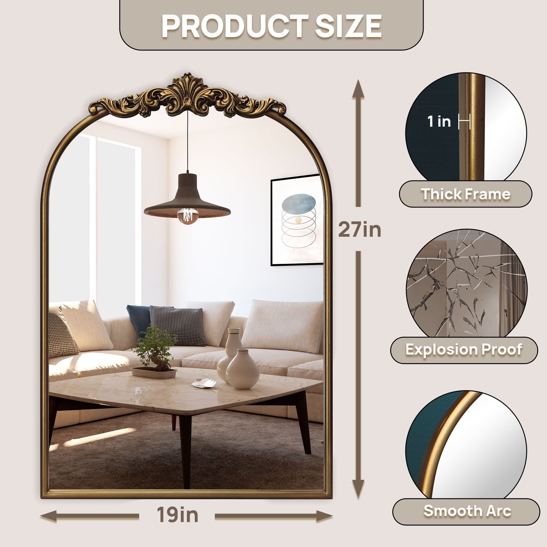 Ornate Baroque Vintage Gold Mirror - 19"X27" Arched Antique Brass Mirror with Full Metal Frame - Perfect for Entryway, Fireplace, Living Room, Hallway Ornate Baroque Vintage Gold Mirror - 19"X27" Arched Antique Brass Mirror with Full Metal Frame - Perfect for Entryway, Fireplace, Living Room, Hallway Ornate Baroque Vintage Gold Mirror - 19"X27" Arched Antique Brass Mirror with Full Metal Frame - Perfect for Entryway, Fireplace, Living Room, Hallway