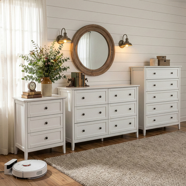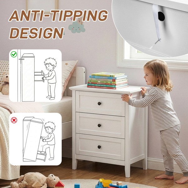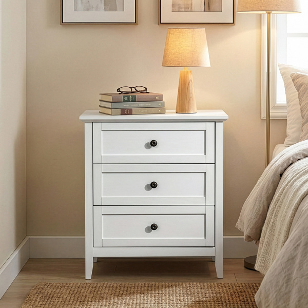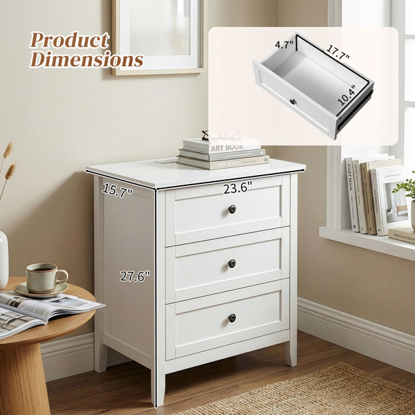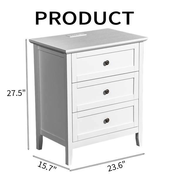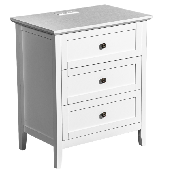 Home > White Embossed (SG014FD) P2 MDF + Particleboard With Melamine Veneer, Framed, 60*40*70cm, Three-drawer Bedside Table, 1 USB + 1 Type-C + 2 Three-