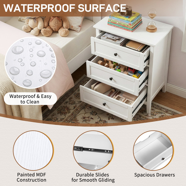 White Embossed (SG014FD) P2 MDF + Particleboard With Melamine Veneer, Framed, 60*40*70cm, Three-drawer Bedside Table, 1 USB + 1 Type-C + 2 Three-